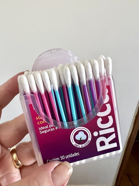 Achei a embalagem prática , as hastes flexíveis Ricca são resistentes e suas pontas são 100% algodão além de ter formato compacto.
